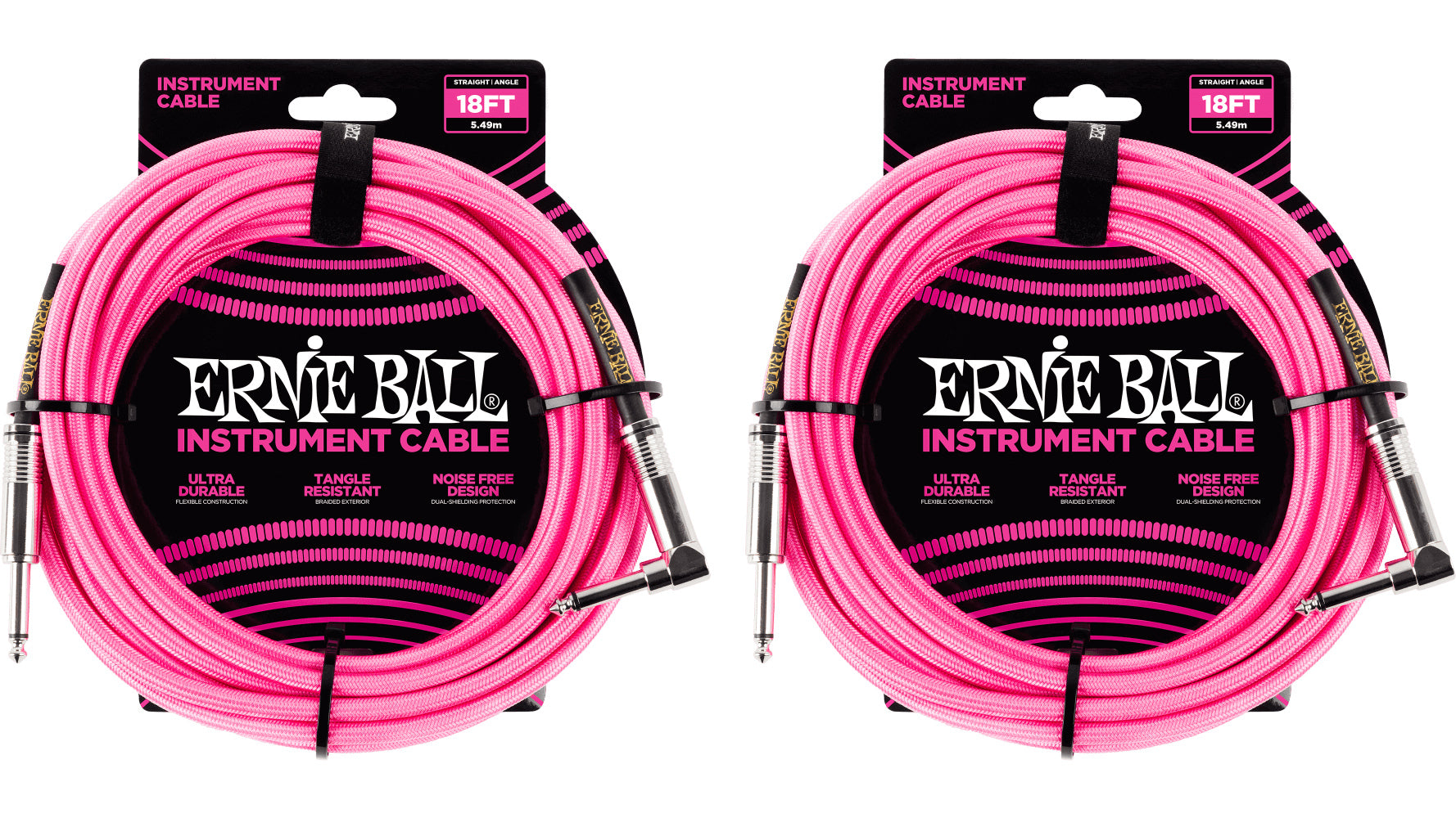 Ernie Ball 18ft Braided Straight Angle Inst Cable Neon Pink