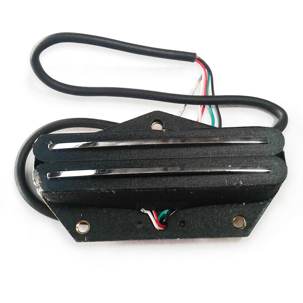 Artec double, Chrome HOT RAIL Single Coil Humbucker Pickups, Alnico 5 Bar, for the Bridge position on TELECASTER style guitars, giving hum-cancelling quality with increased output and sustain. Rated 11.5k with highly insulated 4 conductor wire, for flexibility of Coil Tapping if desired. Plastic bobbin on a sturdy Brass base plate.