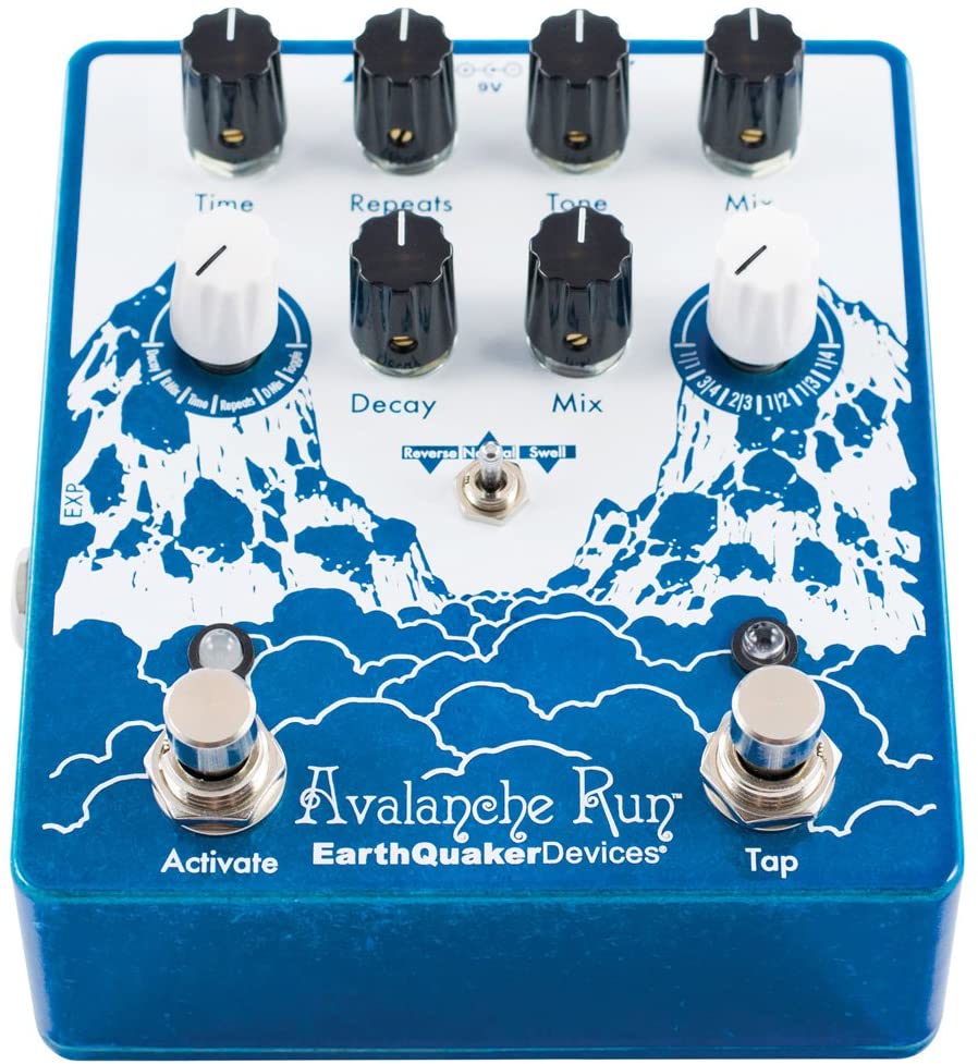 The Avalanche Run is a dreamy stereosonic exploratory multi-tool that includes up to 2 seconds of delay time, reverse delay, tap tempo with subdivision control, switchable true bypass or buffered bypass with 5 different tail lengths (including a sound-on-sound style lo-fi looping mode) and an assignable expression control that maps the expression jack to a control of your choice, including the toggle! The delay section allows tweaking from tape emulation to bucket brigade styles with a twist of the wide-range Tone control. The cavernous, plate-style reverb has just a touch of modulation similar to the one found in our precious Dispatch Master only more lush with an adjustable Decay. Otherworldly reverse delay and dynamic swelling reverb settings are accessible through a 3-way toggle switch. And that’s just the beginning...