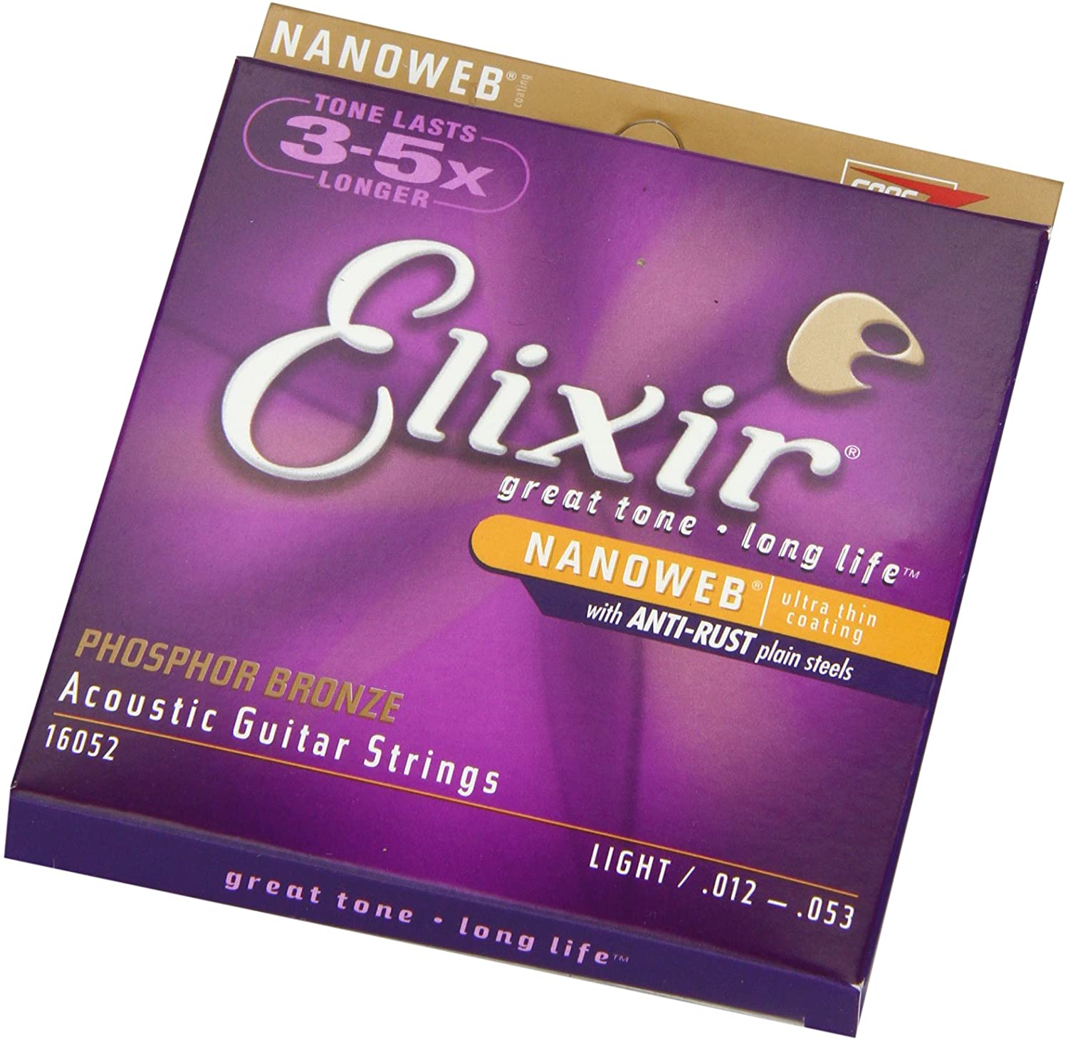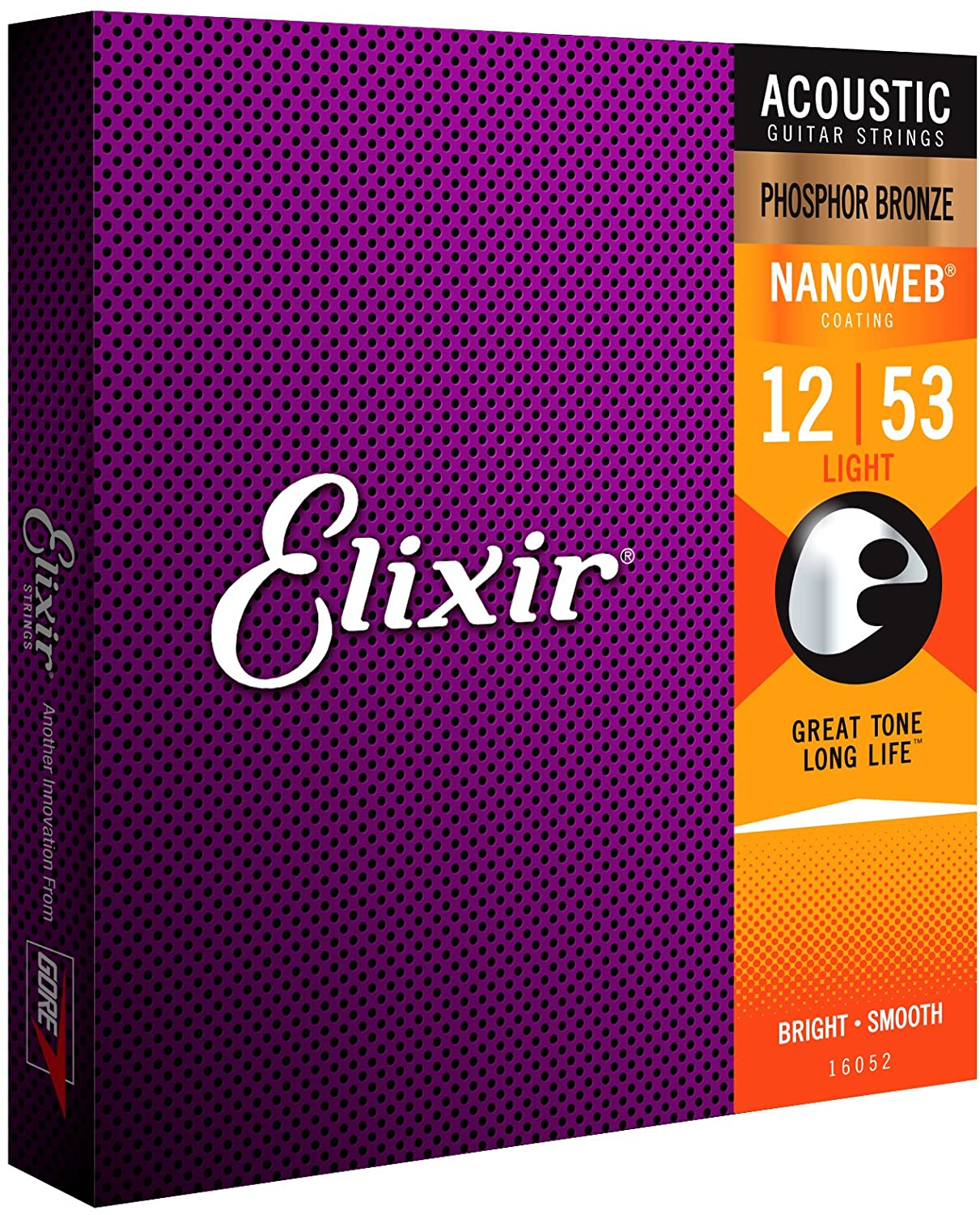 Elixir Strings 16052 Phosphor Bronze Acoustic Guitar Strings - .012-.053 Light