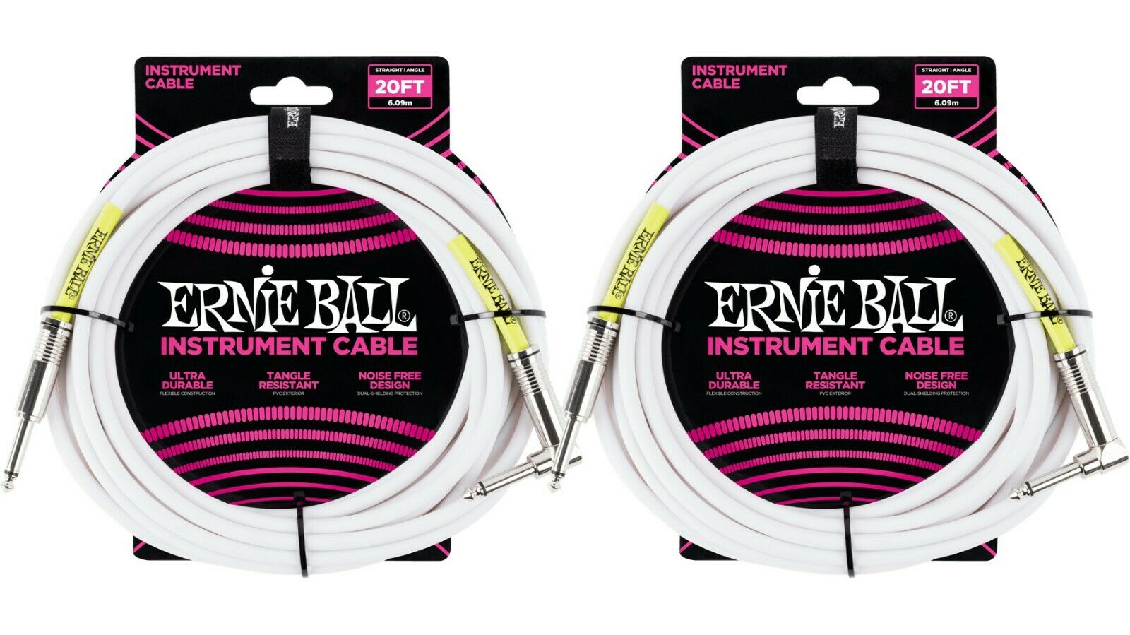 Ernie Ball 20ft Straight Angle Inst Cable White 2 Pack