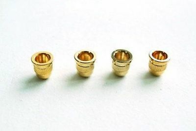 The specifications of the Gold String Ferrules are: Finish: Gold; Bore Dia. - 9.6 mm; Total Dia. - 12 mm; Height - 13.5 mm.